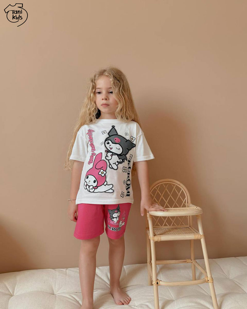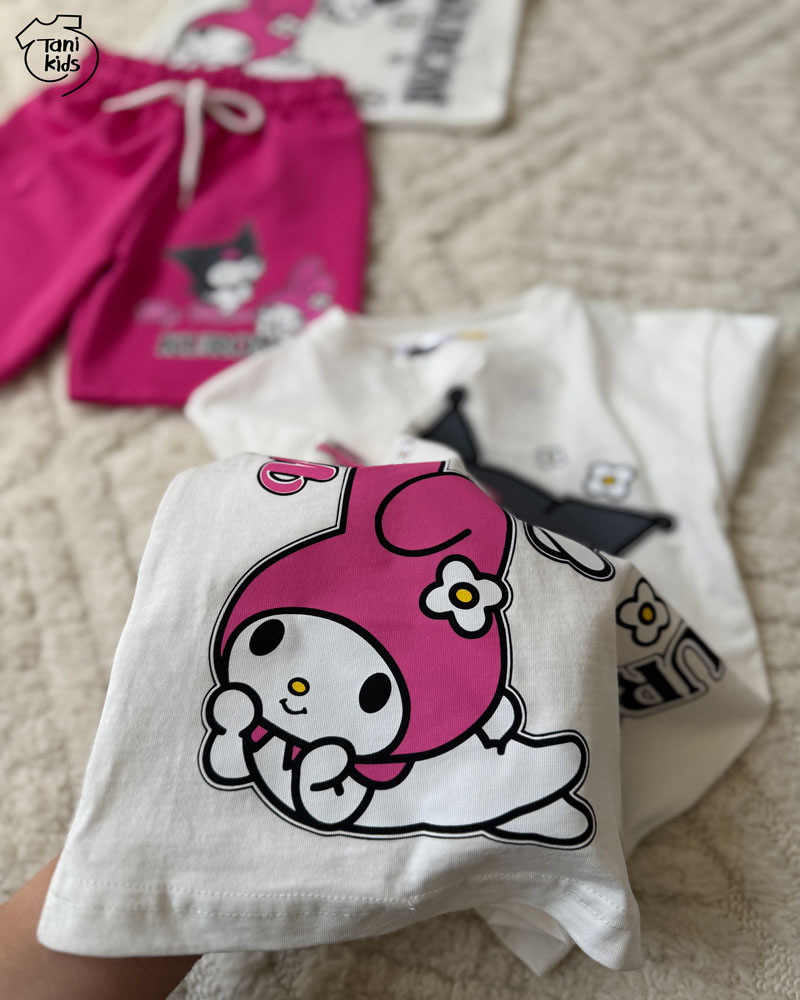 ست تی شرت شلوارک دخترانه طرح کرومی جذاب