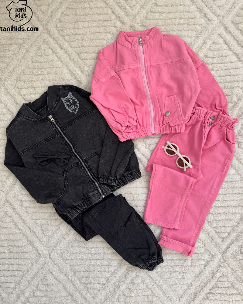ست سه تیکه دخترانه جین کاغذی خوش دوخت